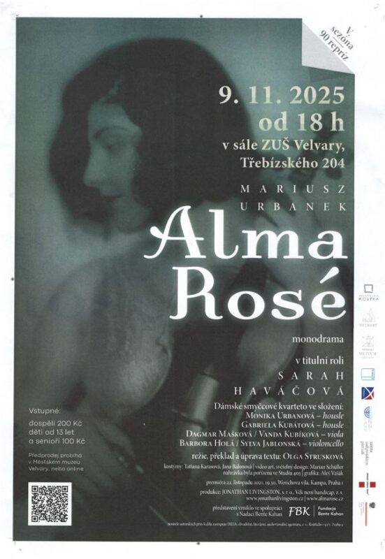 ZUŠ Velvary Vás zve na divadelní představení Alma Rosé, které se koná v neděli 9.11. 2025 od 18:00 v sále ZUŠ.