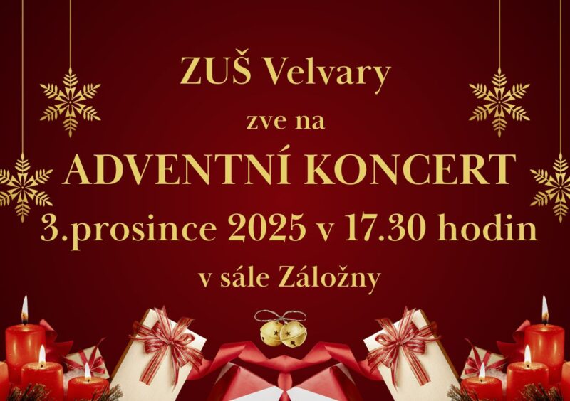ZUŠ Velvary zve na ADVENTNI KONCERT 3. prosince 2025 v 17:30 hodin v sále Záložny.